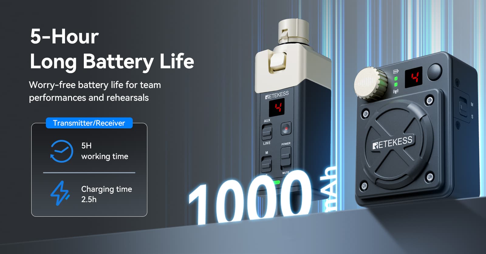 Each band member gets a compact, portable receiver that can be clipped to a belt or pocket. This receiver serves as your personal audio command center. It supports seamless switching between mono and stereo modes (ideal for precise recording or immersive performance). With a 1000mAh battery and Type-C charging port, it offers over 5 hours of battery life—perfect for long rehearsals or performances.