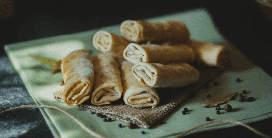 3. Puff pastry replacement: If there is no ready-made spring roll wrapper, you can make your own batter (flour + water + egg into a thin batter) and fry it into pancakes instead.