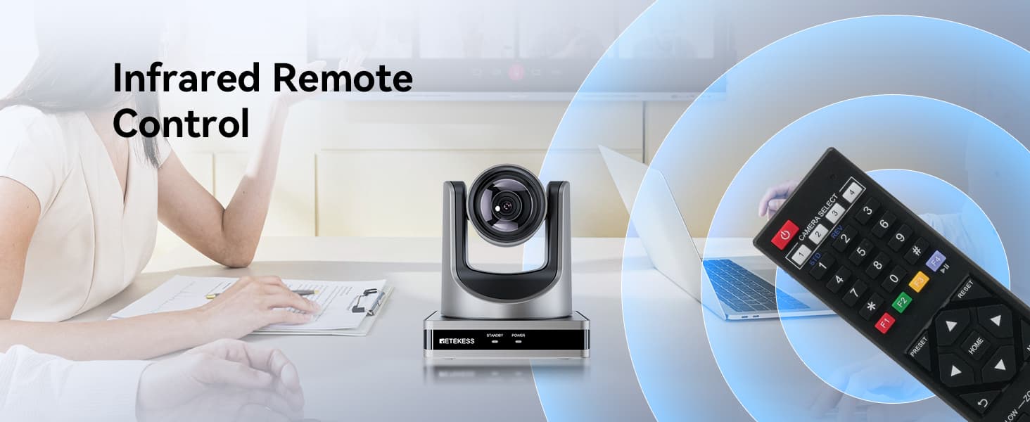 The TC202 pan-tilt camera features a stable and sensitive pan-tilt function, with a horizontal rotation range of ±170° and a vertical rotation range of -30° to +90°, supporting up to 255 preset lens positions.