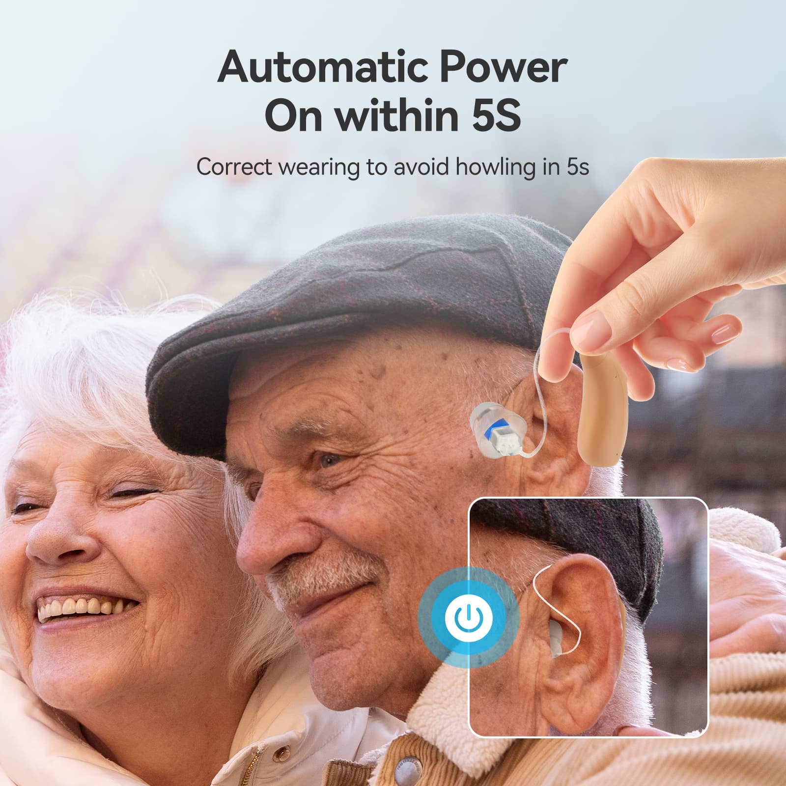 Our RIC hearing aids are engineered with a smart Instant-On function that activates the moment you put them on. Within just 5 seconds, the hearing aids power up and start delivering clear, natural sound. This quick startup eliminates the hassle of manual switching and ensures you never miss a beat. Whether you're rushing out the door in the morning or adjusting them mid-day, these hearing aids are always ready to enhance your auditory experience.
