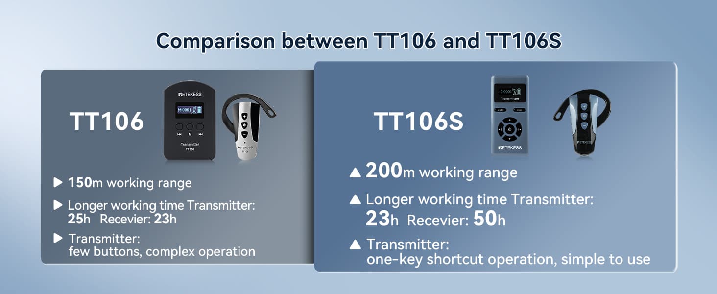 With features like 9999 channels, one-touch operation, and improved battery life, the TT106S stands out as the ideal choice for anyone looking for a tour guide system that is both powerful and user-friendly.