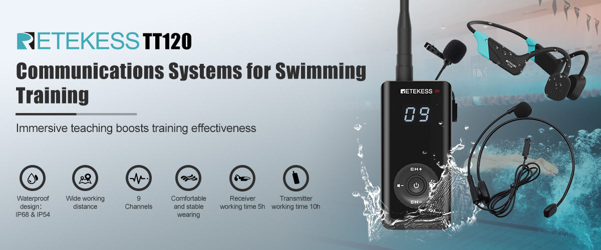 During underwater activities or swimming training, clear communication is essential. Designed for swimming coaches, water athletes and diving enthusiasts, the Retekess TT120 Swimming Guidance System(swim talk training system)uses advanced waterproof technology and bone conduction technology to ensure that users can maintain unimpeded communication whether on the surface or underwater. To help you better understand and use the swim coach communicator system, here are some FAQs.