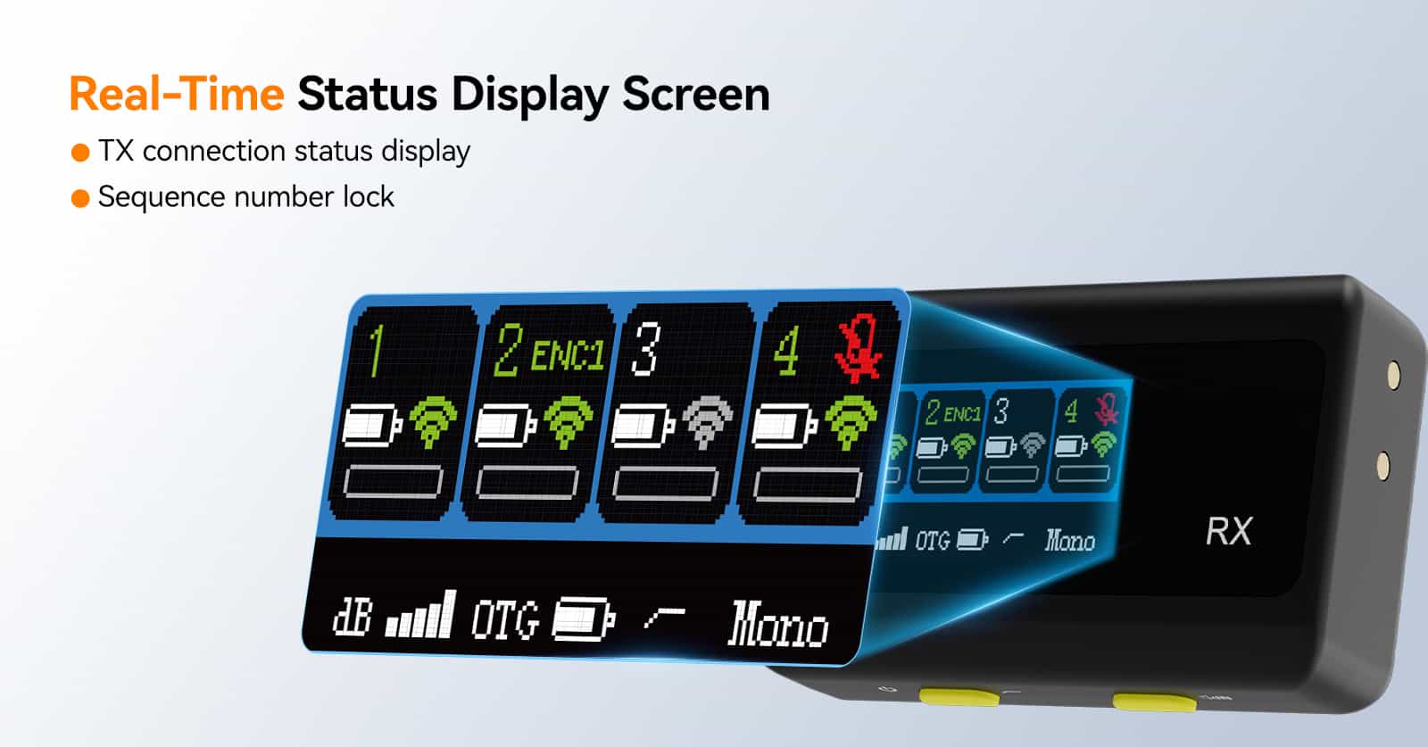 2. ENC: Indicates the transmitter's noise reduction status. ENC1 is normal noise reduction, and ENC2 is enhanced noise reduction.
