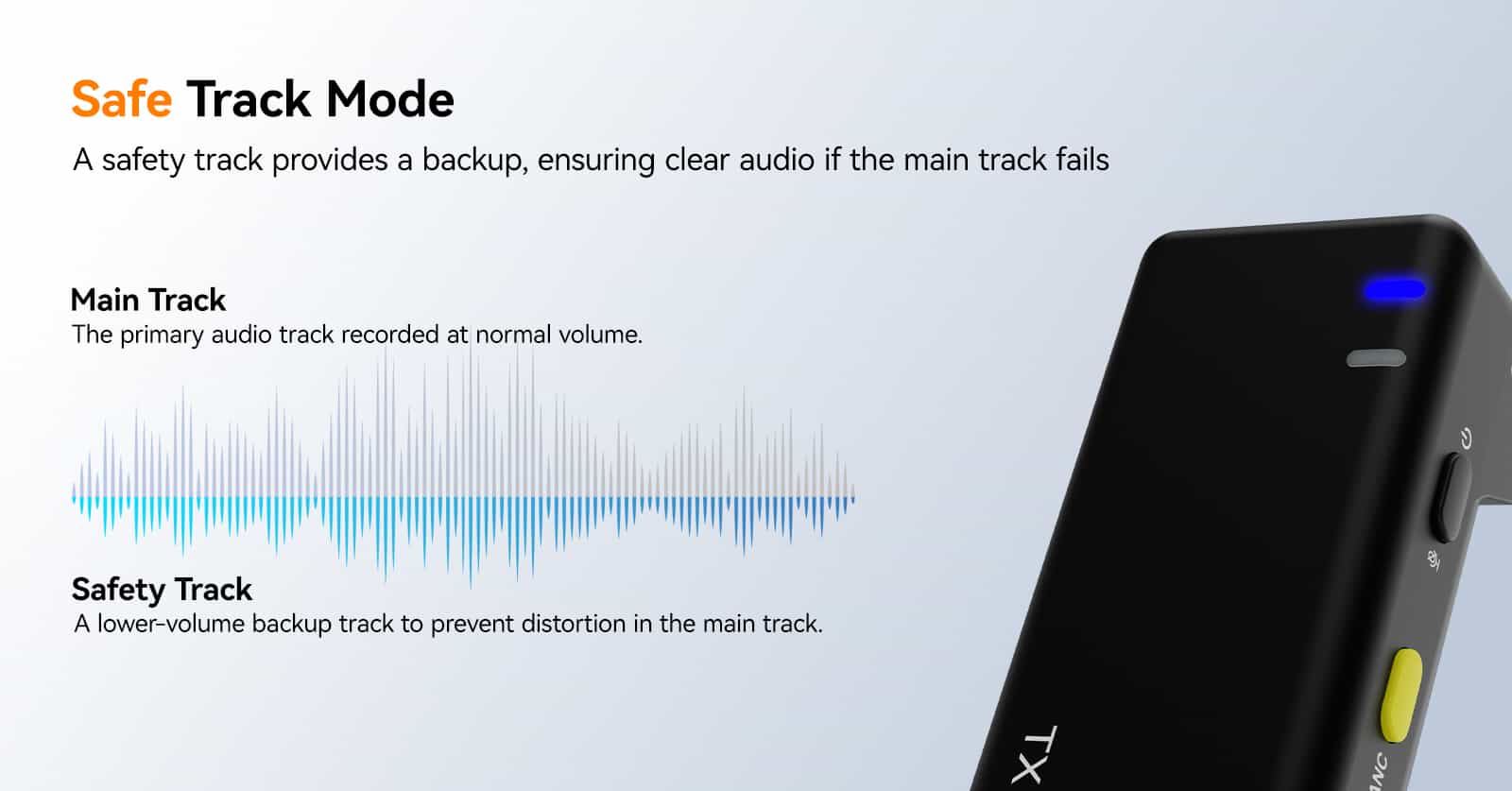 8. Output mode display: "Mono" is mixed output, where all transmitter audio is mixed across the left and right channels; "Ms" is safe audio track output, where the right channel output is 6dB lower than the left channel.