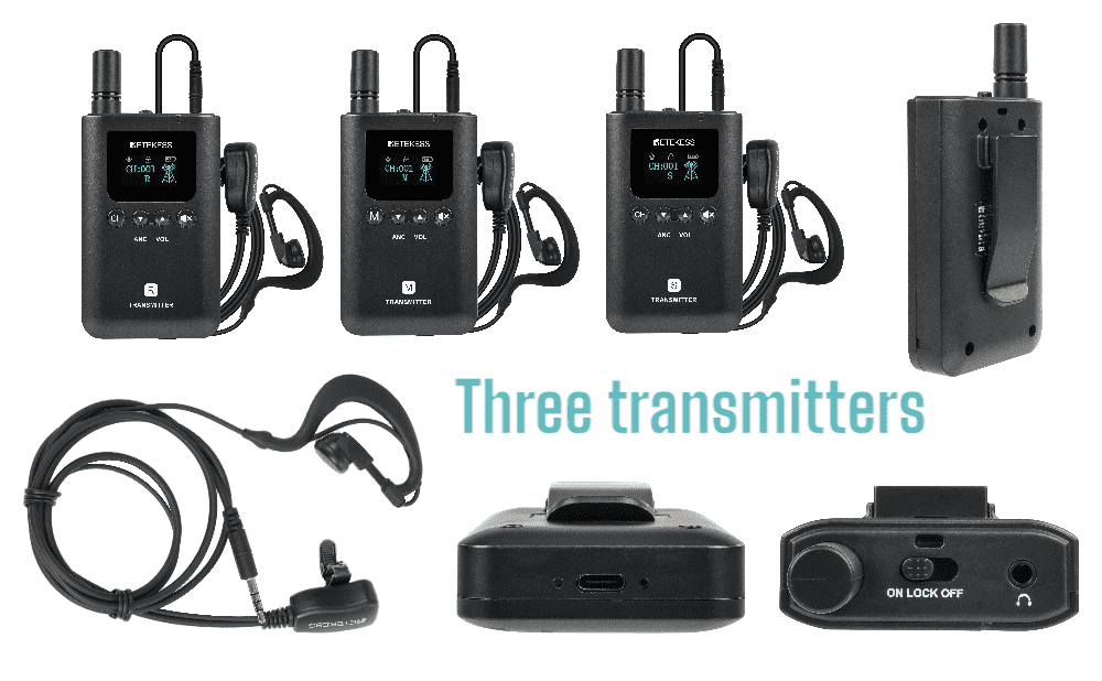 Triple transmitter architecture: This innovative feature allows multiple speakers to communicate dynamically and simultaneously, making it a perfect solution for conferences, training and group tours.