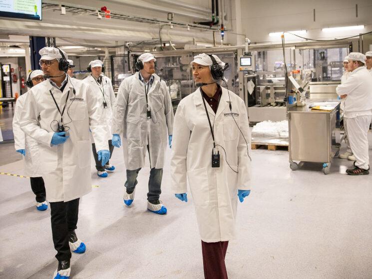 This important visit didn't just show off how strong Juustoportti's business is, it also proved how modern and international they are. But, touring a busy dairy plant definitely has its challenges. For example, loud machines, busy production lines, and background noise can make regular guided tours useless. |