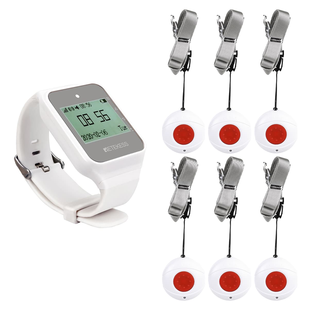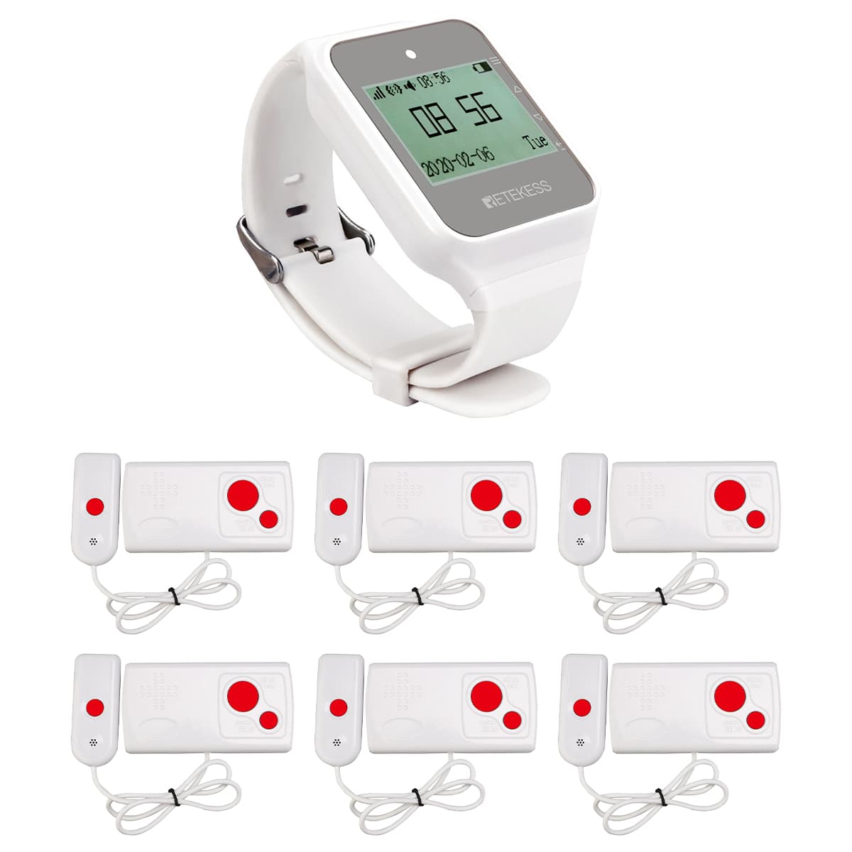 Retekess provides you with instant and stable hospital paging system solutions. A complete paging system includes: nurse call button transmitter, watch receiver, or screen receiver. You can add repeaters if you need to increase the working distance.