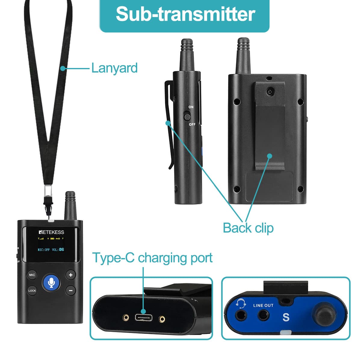 One-touch pairing of main transmitter and sub-transmitters; One-touch to mute main transmitter; Long press of main transmitter to turn off all sub-transmitters in batches. Automatically memorize the paired channel, ready to use after power on, no need to re-set.