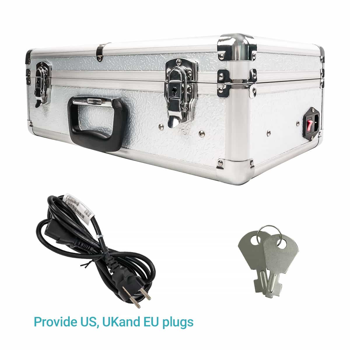 24-Slot Charging Case: Contact charging eliminates plugging/unplugging for effortless use. Constructed with durable aluminum alloy, it charges 24 devices simultaneously and serves as a storage case for devices, microphones, earpieces, lanyards, and other accessories.