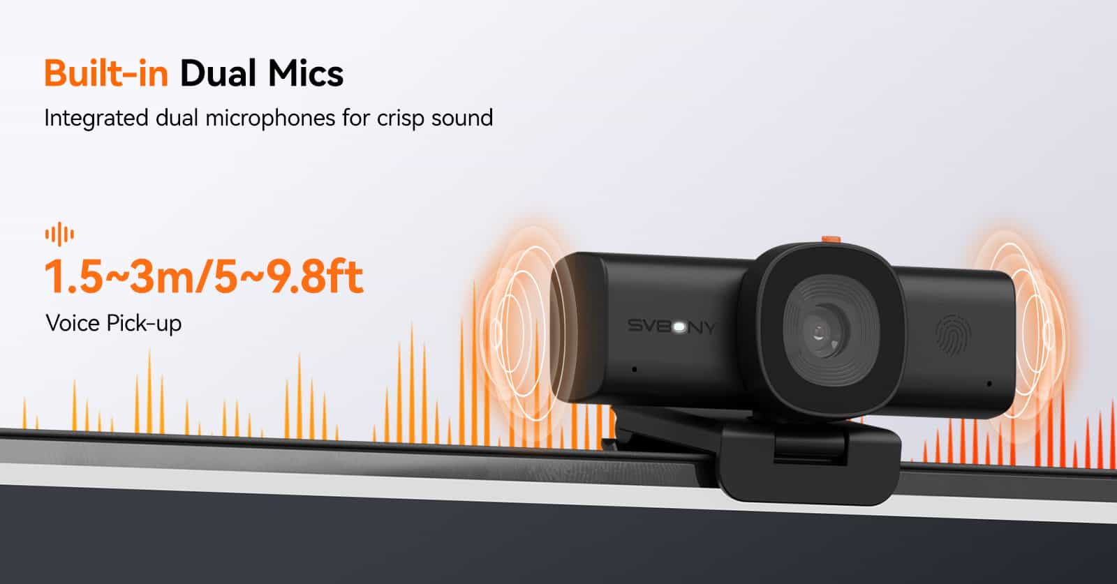 Dual AI noise-canceling omnidirectional microphones with a pickup range of approximately 1.5-2 meters;