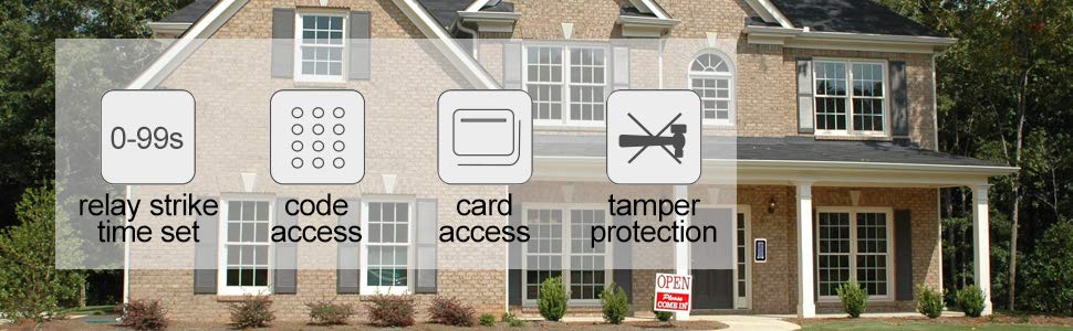 Supports Card, PIN, Card + PIN 3 ways to open the door. Keypad entry of a valid one to four-digit code activates one or both of the output relays which releases an electric door lock. And you can set door relay strike time 0-99 seconds.