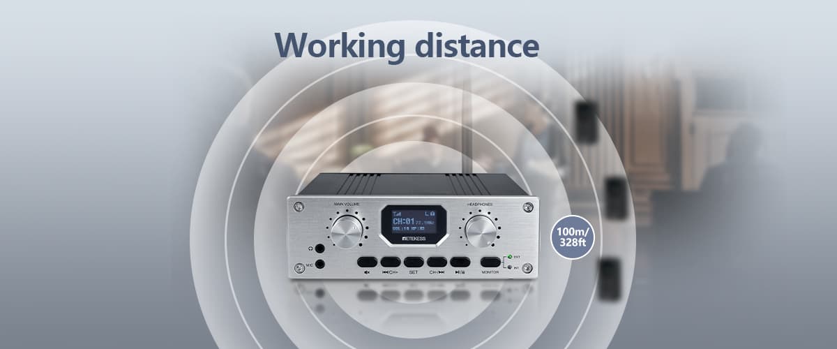 Experience freedom of movement and pristine sound with the TT119. It wirelessly transmits audio over an impressive 328-foot range. Leveraging the inherent penetration of FM signals, it operates without needing a direct line of sight, effectively minimizing dropouts and interference—even through walls and obstacles.This ensures every word reaches your entire audience with exceptional clarity. From the front row to the very back, everyone enjoys perfectly synchronized, dropout-free audio for presentations, translations, or music.
