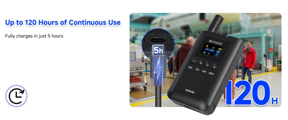 5 Hours of Charging, 120 Hours of Use. Usable Continuously for a Week!