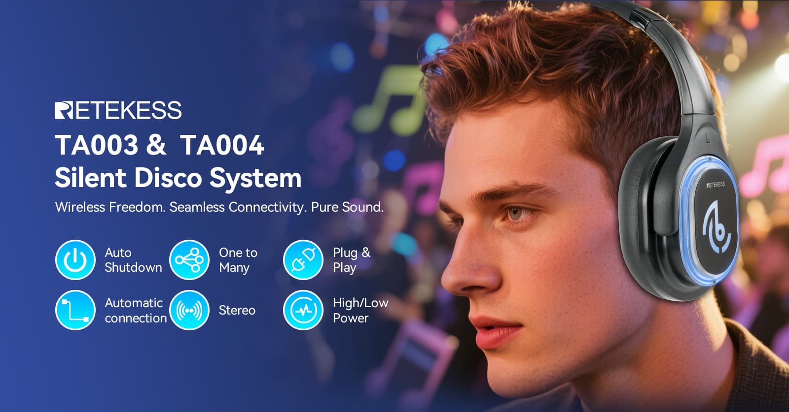 Do you own a club, bar, or restaurant and want to offer a truly unique experience? Are you a DJ, promoter, or event organizer looking to captivate a wider audience? Or perhaps you run an immersive/silent cinema and seek to deliver crystal-clear personal audio? Are you tired of noise complaints limiting your events? Look no further— Retekess TA003 TA004 Silent Disco System is the perfect noise solution for you.