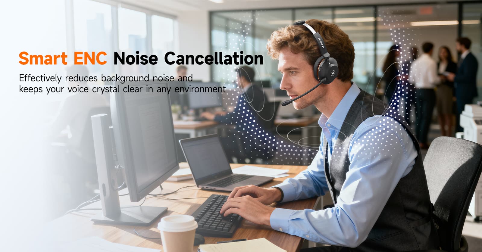 The SVN H1 wireless headset is equipped with a microphone and uses ENC noise cancellation technology, achieving a noise reduction rate of up to 95%. Whether in meetings, classrooms, or other environments, it effectively filters background noise such as keyboard clicks, ensuring clear communication in meetings, remote work, or online training.
