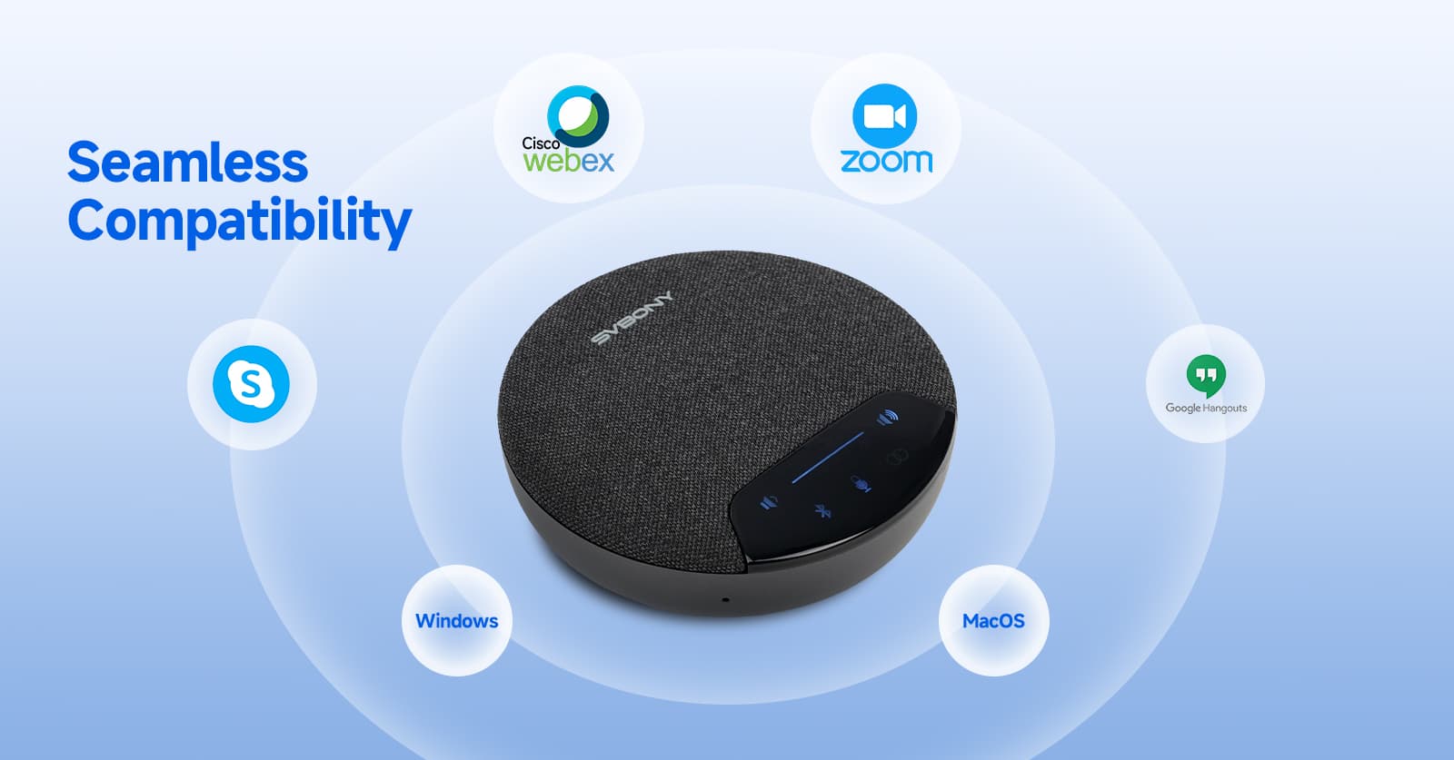 Easy to use, plug and play, compatible with major platforms such as Zoom, Microsoft Teams, Google Meet, and WebEx. Supports Windows and macOS systems, and is compatible with common platforms. Ideal for any conference speaker and microphone setup.