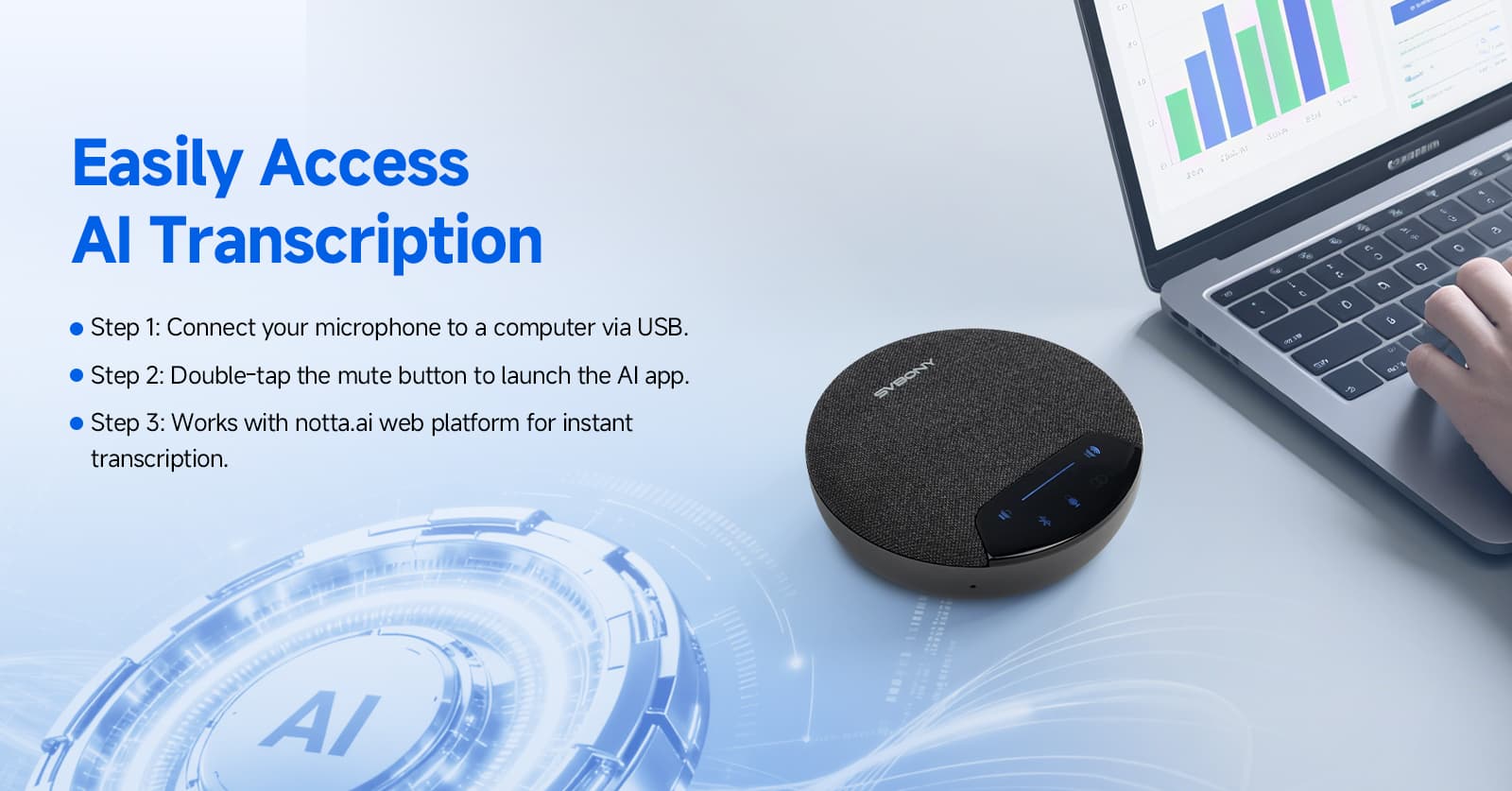 In USB mode, the AI button supports real-time transcription and summarization. Customizable one-click shortcuts help ensure clear and efficient meeting communication, providing a smarter and more personalized conference microphone experience.