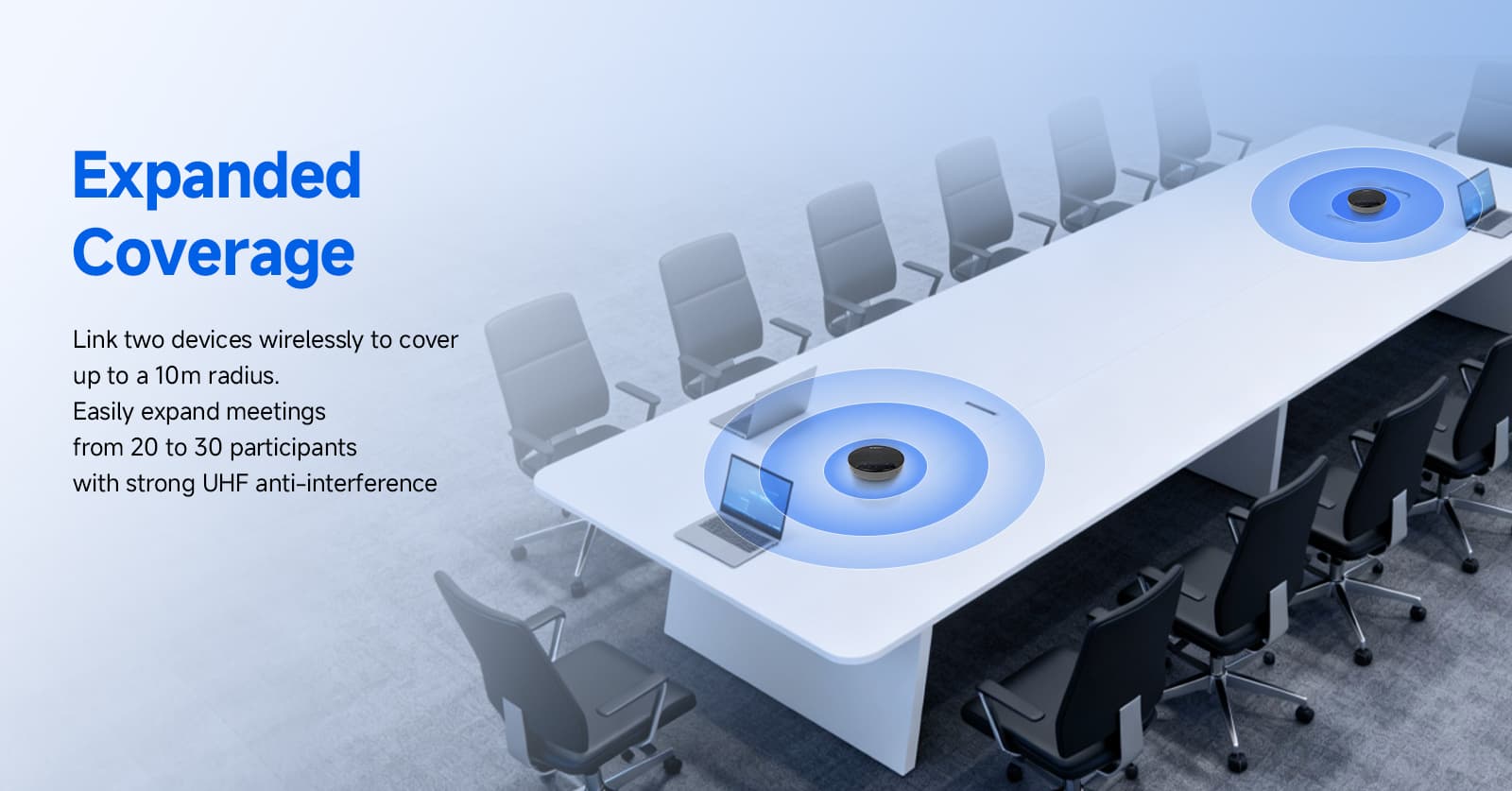 This portable microphone supports connection between two devices within a 10-meter range. Easily expand your conference speaker system via UHF wireless cascading, adapting to rooms of various sizes and ensuring all participants hear clear and stable sound.