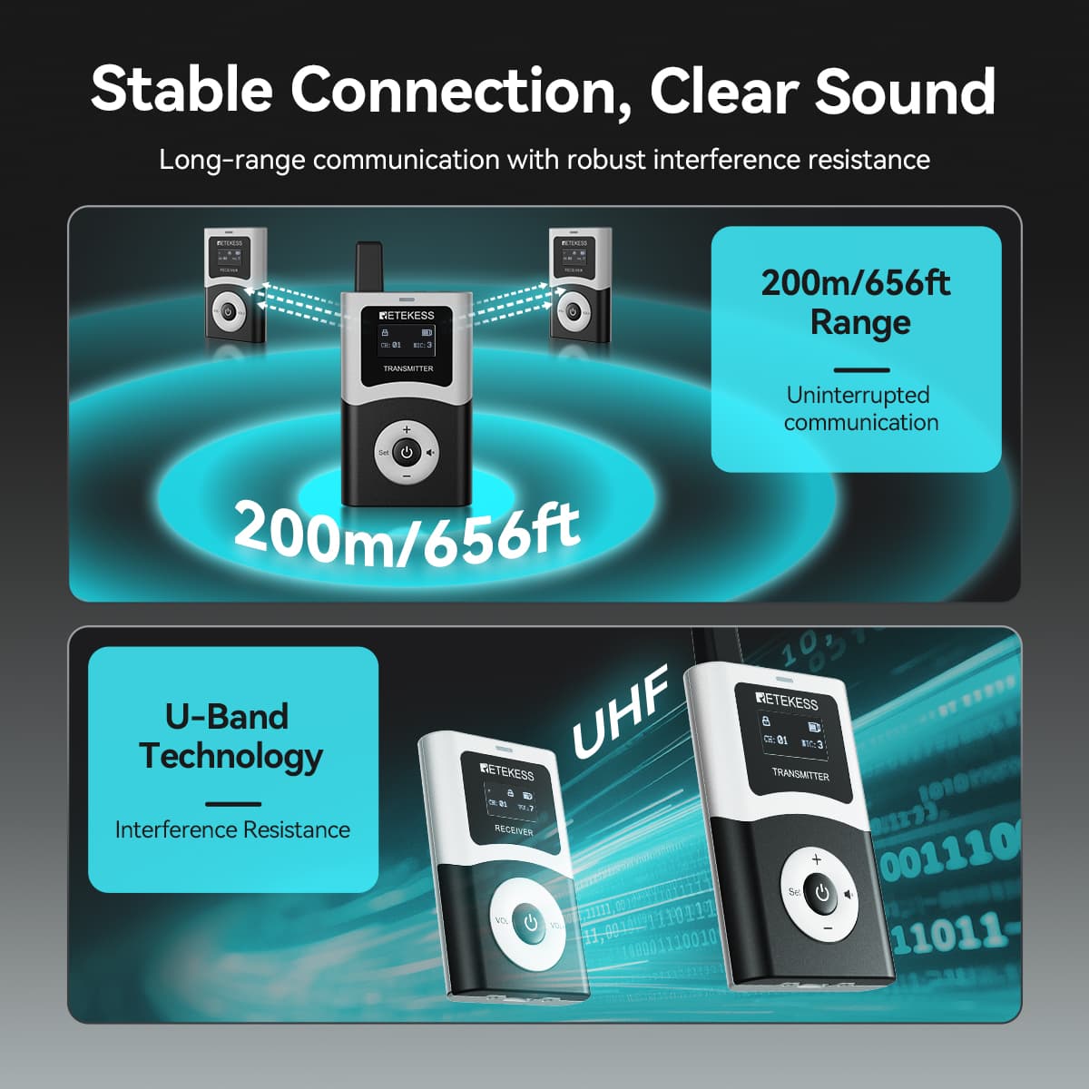 The UHF interference resistance of the transmitter ensures stable signal transmission; even in crowded areas or environments with multiple wireless devices; offering seamless audio communication.
