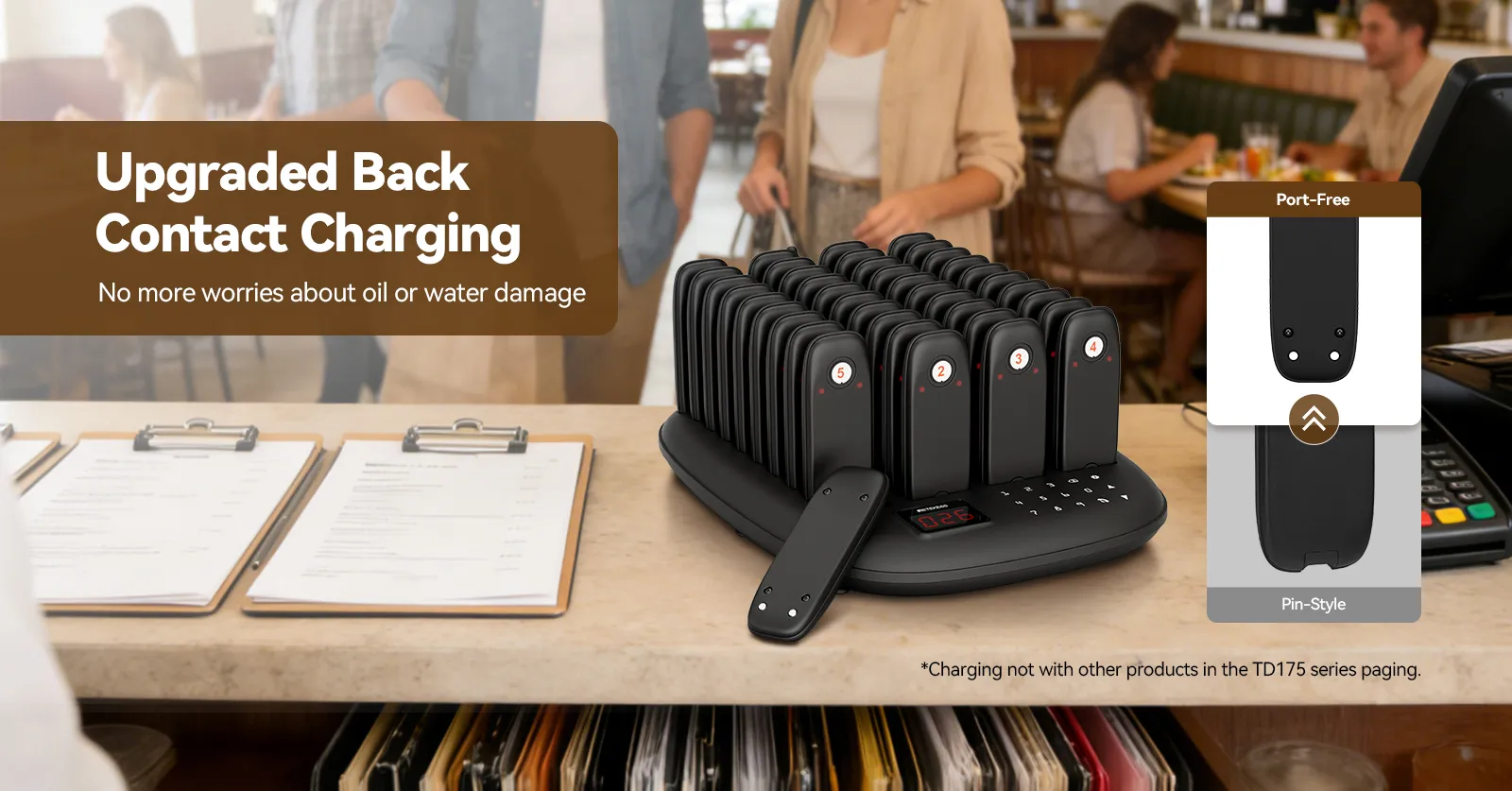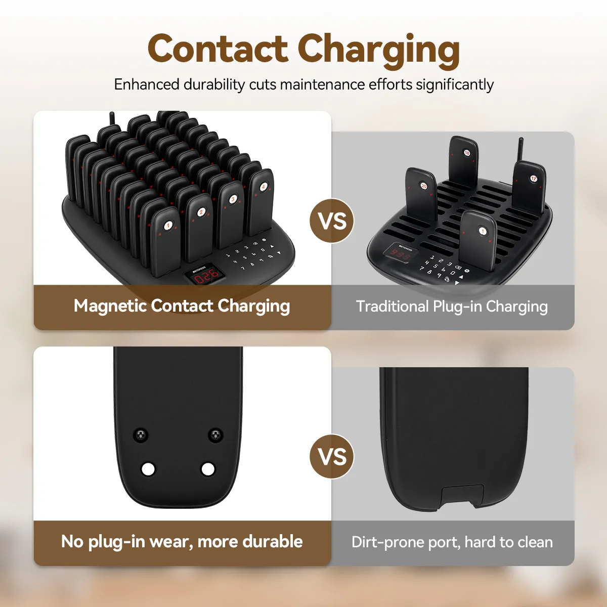 With metal contact charging and the original touch keypad; the pager makes operation smoother and cleaning more efficient; the upgraded design helps maintain the longevity of the device without compromising on performance.