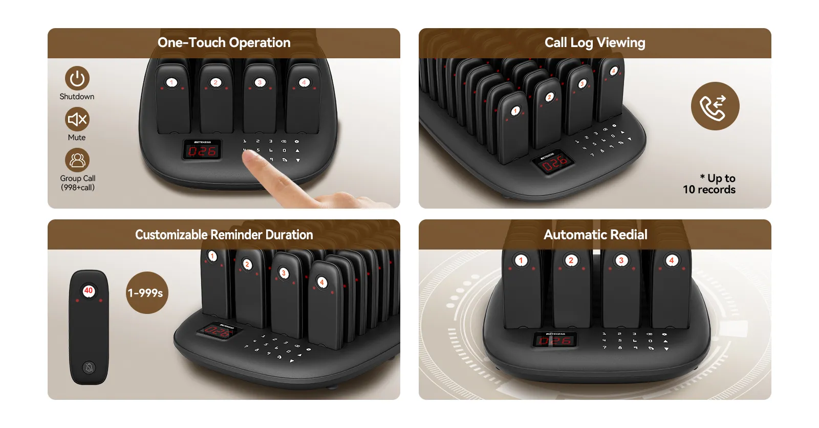With auto redial feature; the restaurant pager automatically retries if the initial call goes unanswered; ensuring reliable communication and better service without manual re-dialing.