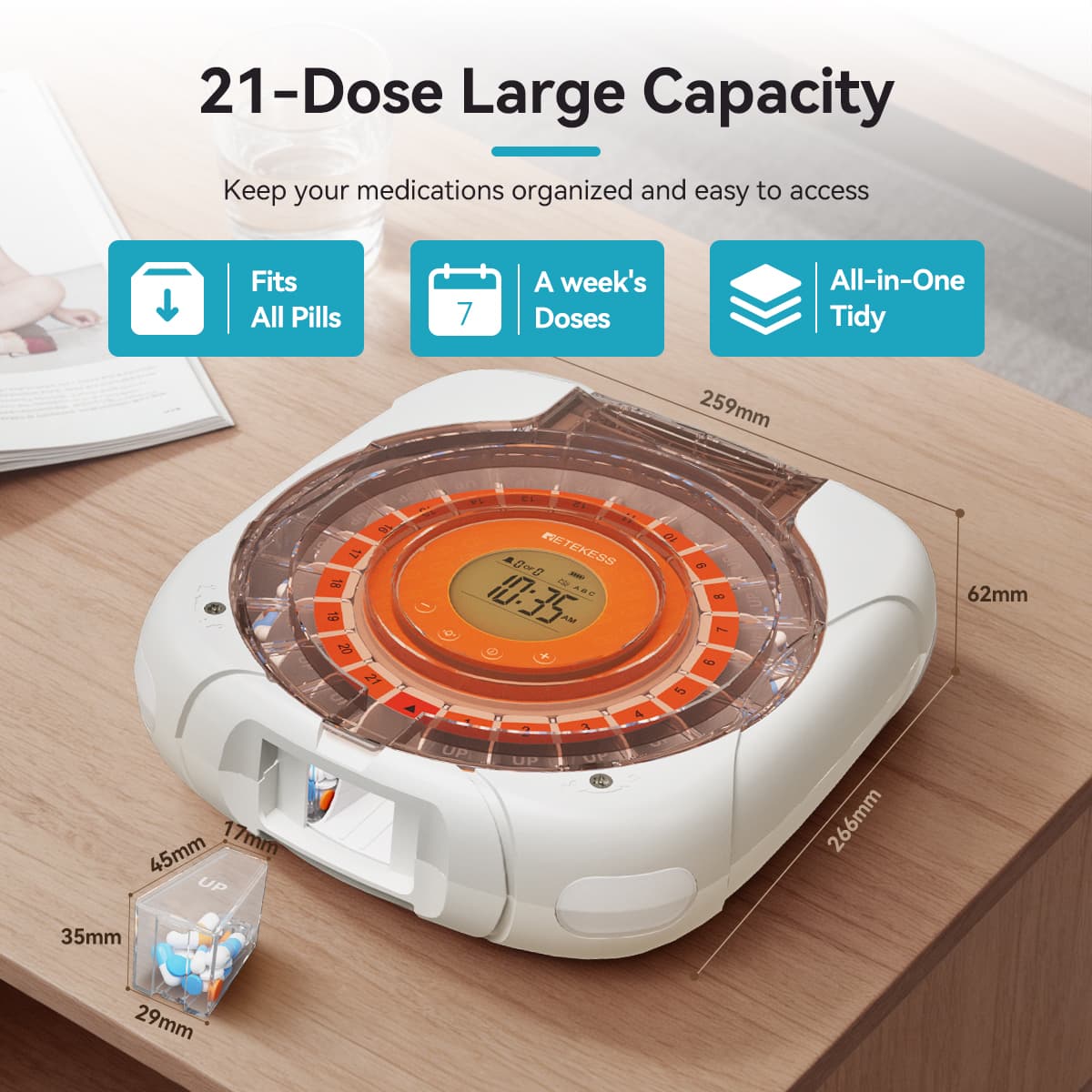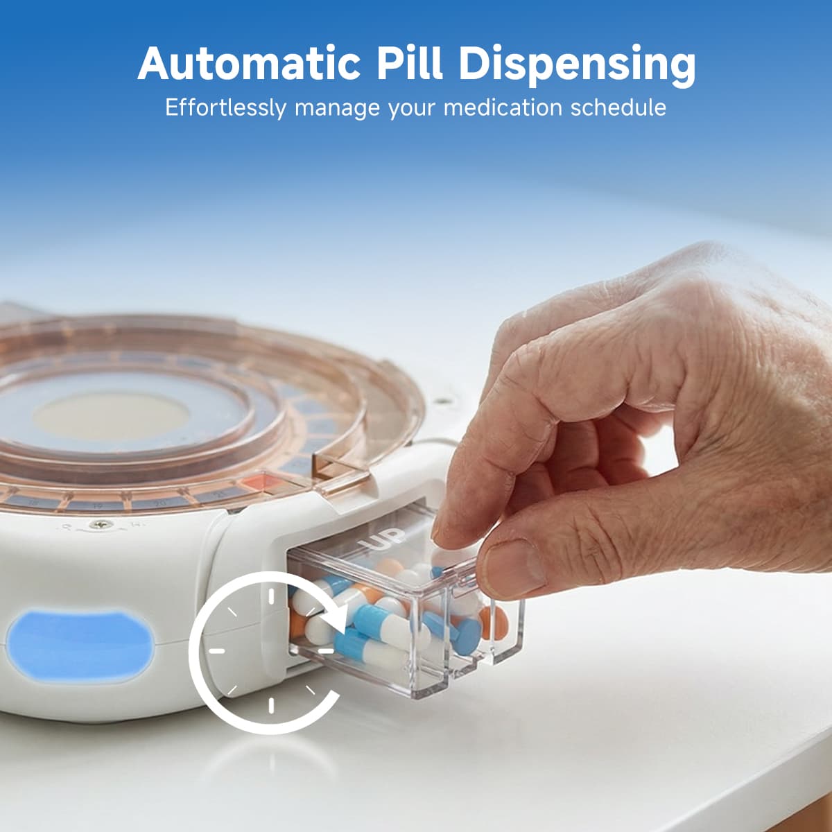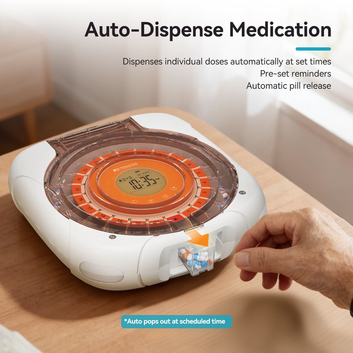 Featuring a mechanical structure lock, the pill compartments are fully secured when not in use, eliminating the risk of accidental access or medication mix-ups entirely. No tilting is needed to retrieve pills— the corresponding compartment pops out automatically, making operation effortless, especially for users with limited hand dexterity.