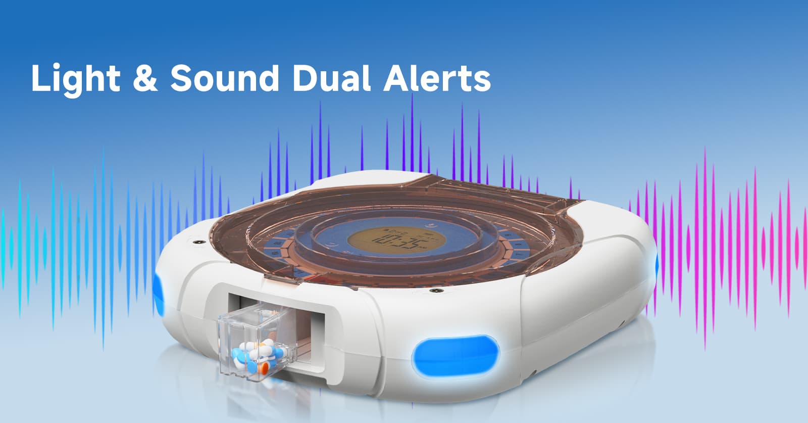 Customize up to 9 alarm groups per day to perfectly adapt to complex multi-dose medication schedules. When the alarm goes off, it delivers dual reminders with bright flashing lights and a loud audible alert, ensuring you won’t miss a dose even in noisy environments.
