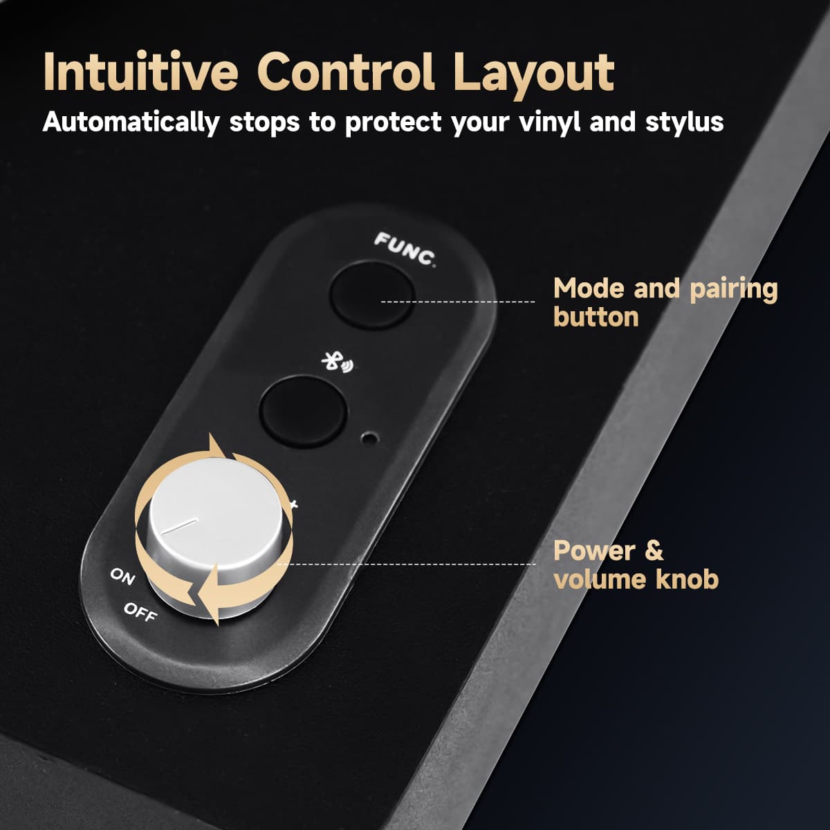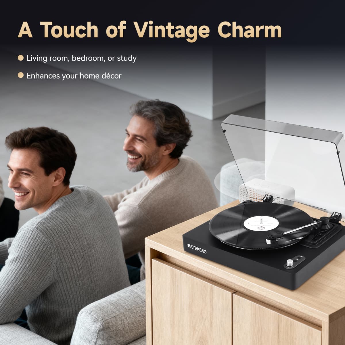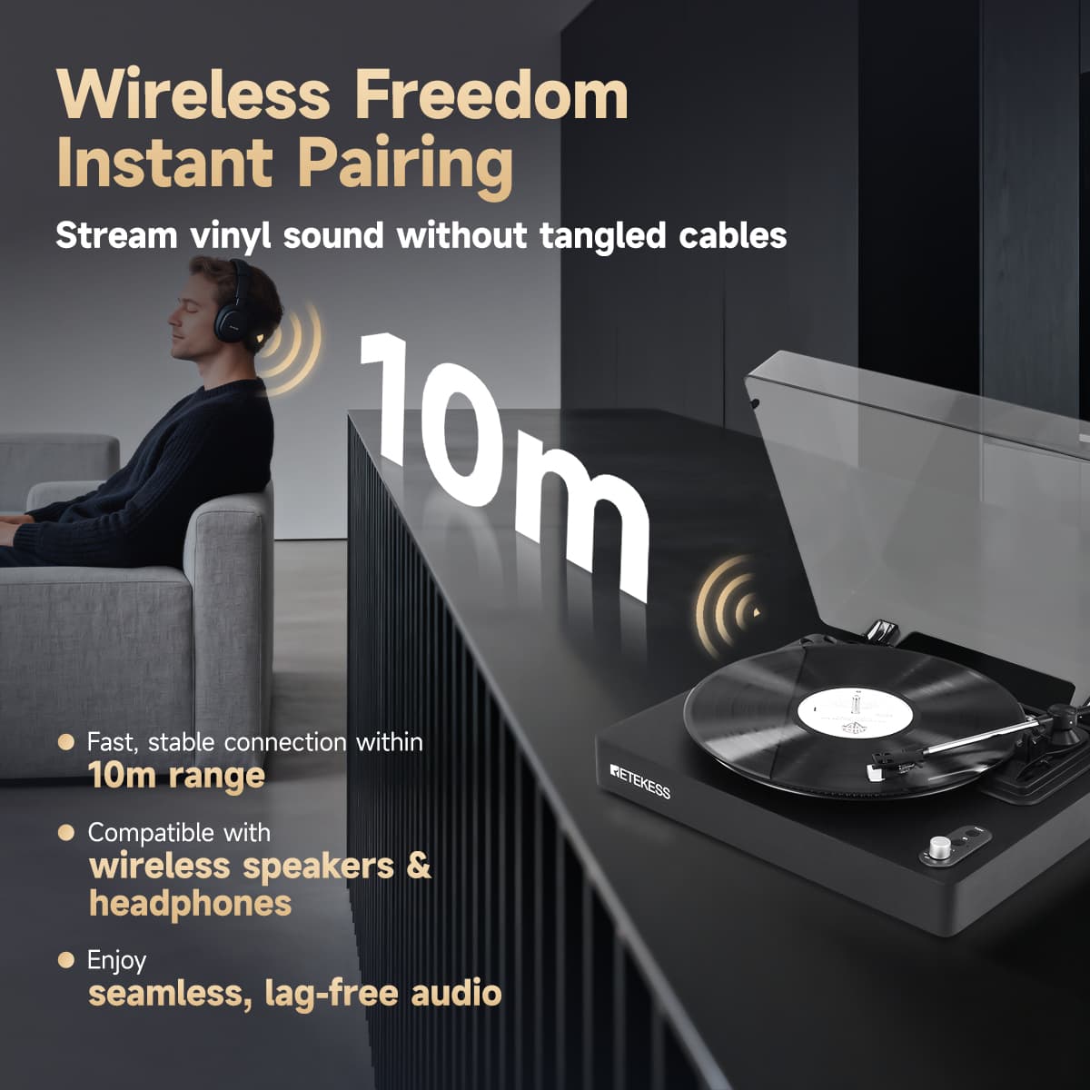 Featuring wireless playback within a 10-meter range; this turntable for vinyl records integrates wireless connection technology; ensuring clear sound transmission without the clutter of cables.