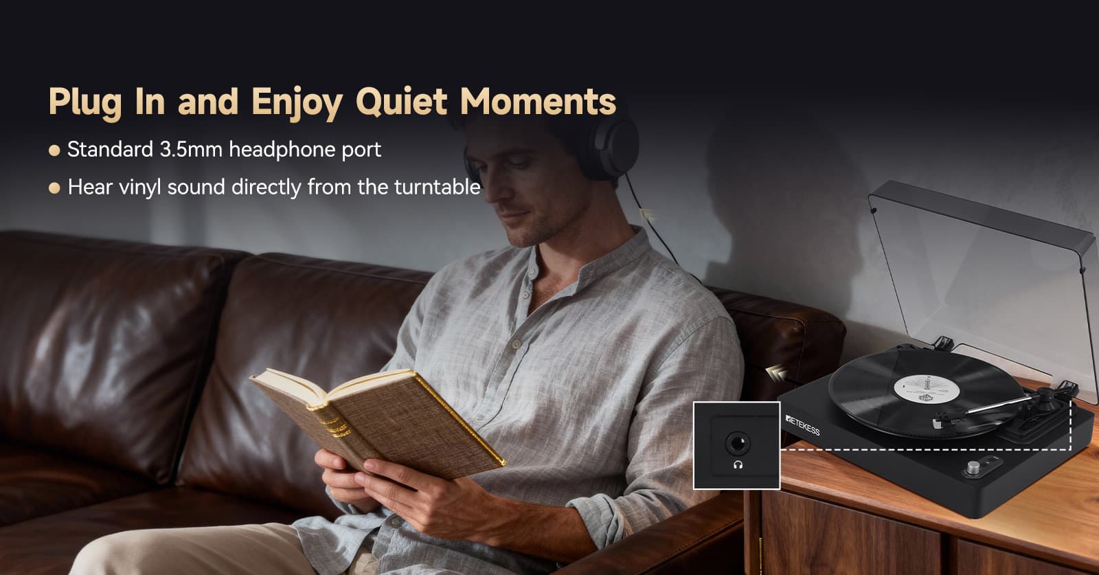With the built-in 3.5mm headphone jack; this turntable for vinyl records allows easy connection to headphones; delivering a crisp; immersive sound directly to you.
