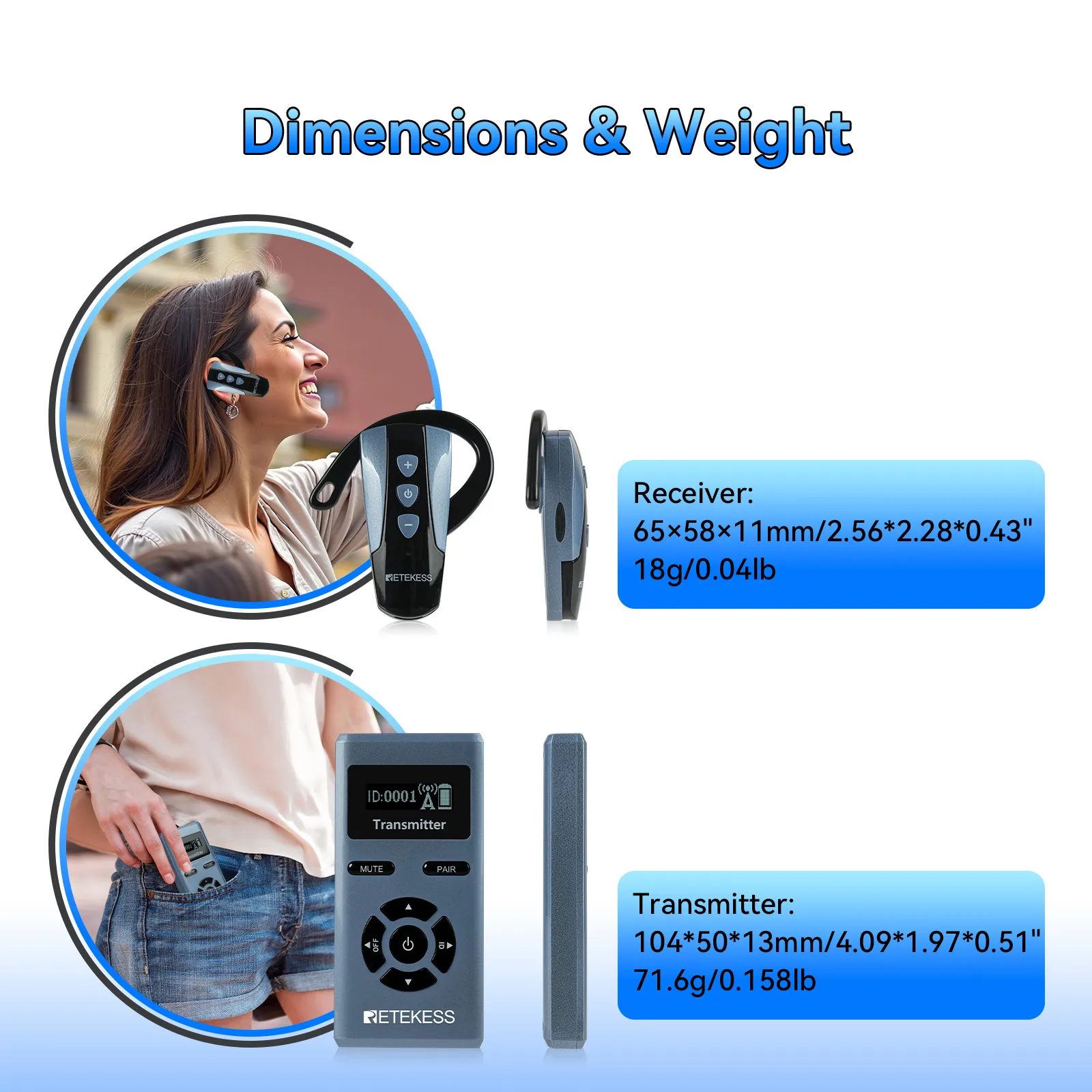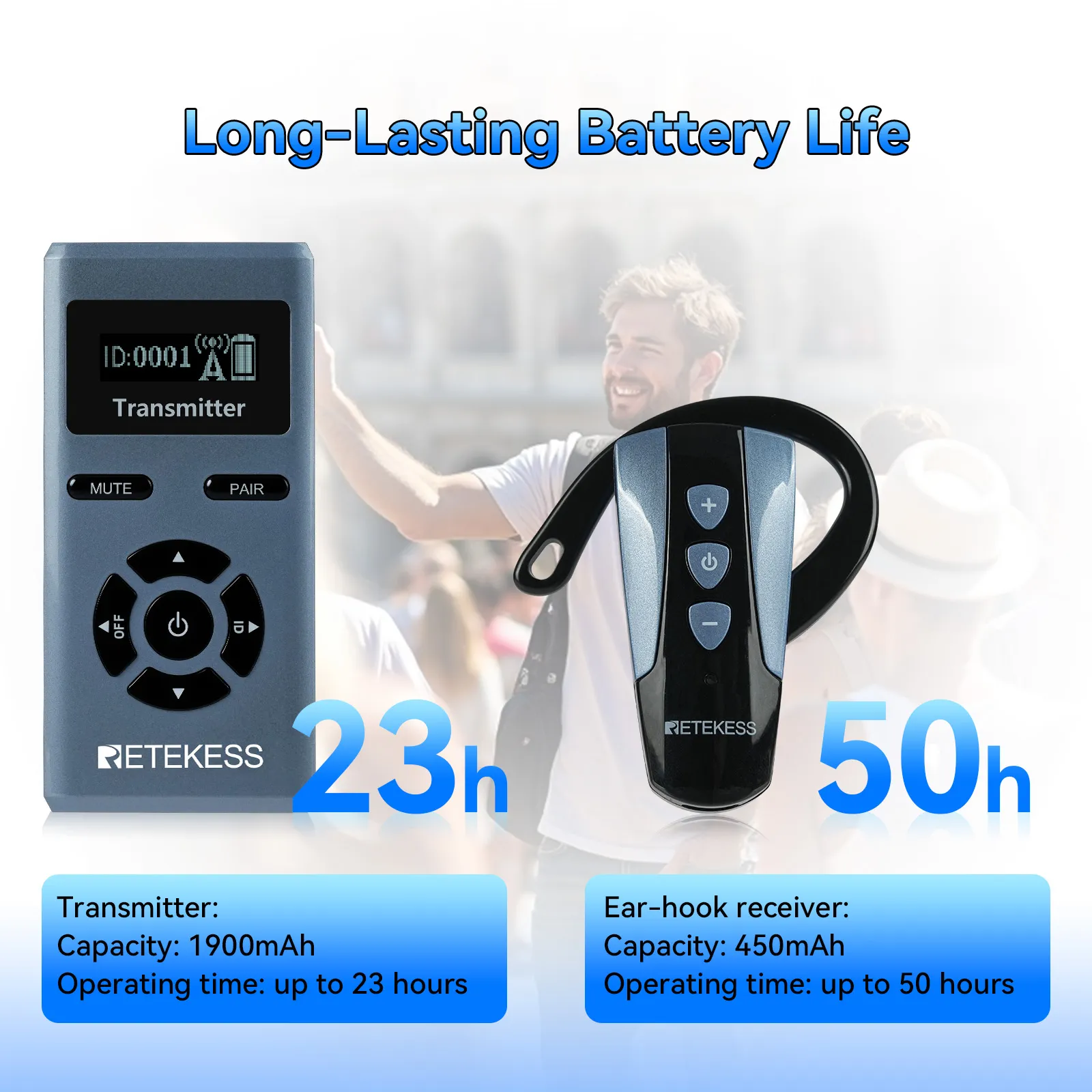 Weighing only 18g, this wireless ear-hook device is easy to maintain and manage.