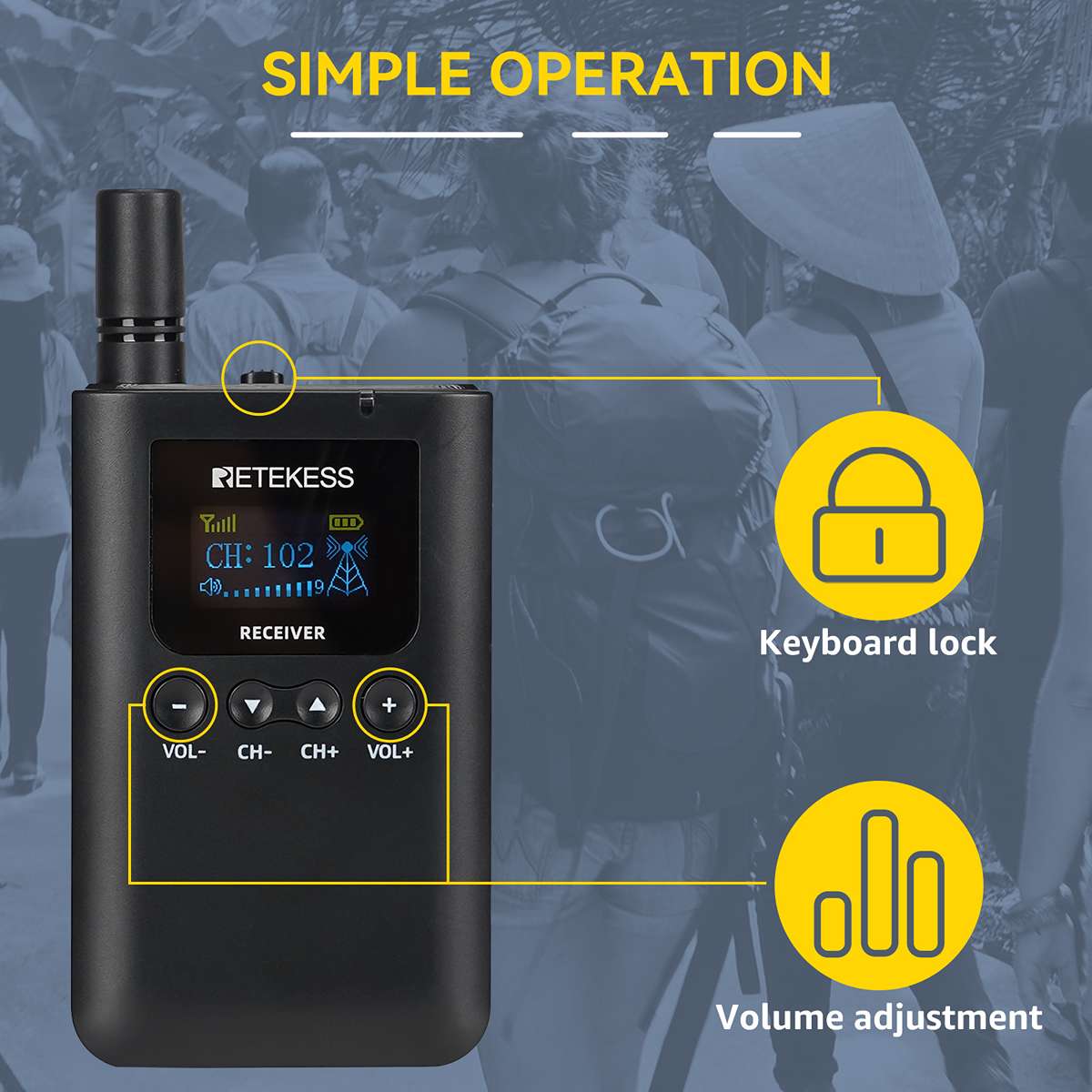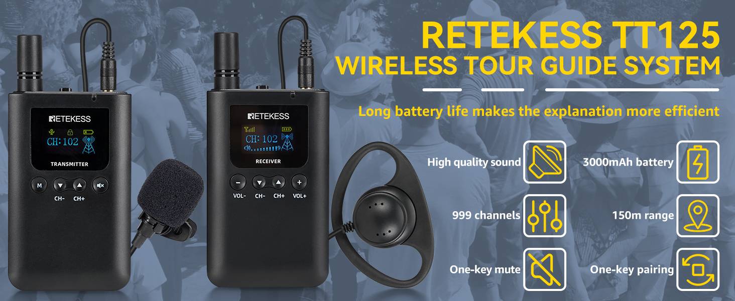 The TT125 transmitter can transmit audio to as many TT125 receivers as are within the transmitter's operating range. So you have the flexibility to add or subtract receivers depending on the size of your group.