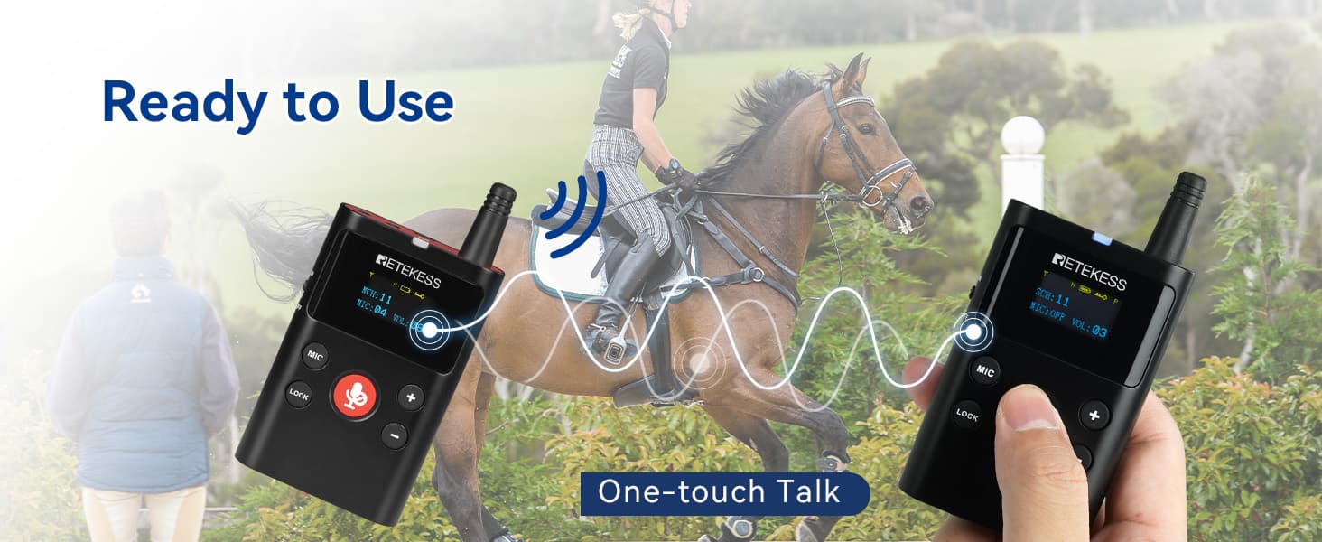 The TT126 equestrian coaching system, favored by top coaches and riders worldwide, allows coaches to communicate with riders remotely with crystal-clear voice. Easy to use, the coach wears the TT126 main transmitter and the rider wears the TT126 vice transmitter. Voices are crystal clear, even in strong winds!
