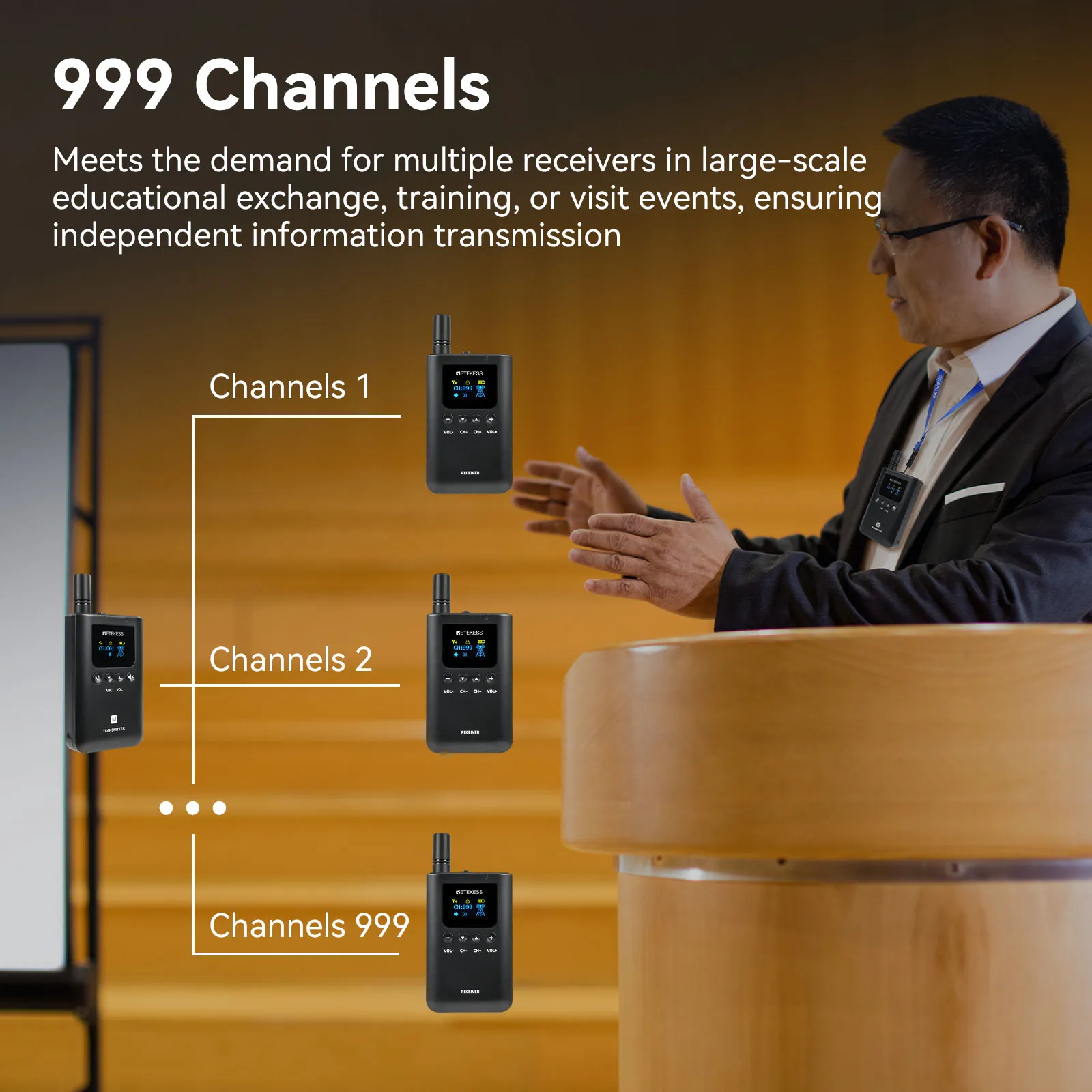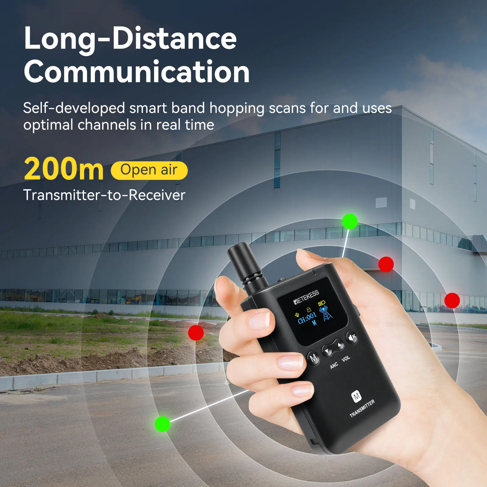 Adopting high-performance signal transmission technology, it maintains stable and clear voice transmission in open and large spaces — ideal for sprawling scenic spots, large factories, or spacious workshop areas. With 200m transmission distance between transmitter and receiver in open areas, guides and factory receptionists can explain freely, and visitors can follow along without signal interruption.