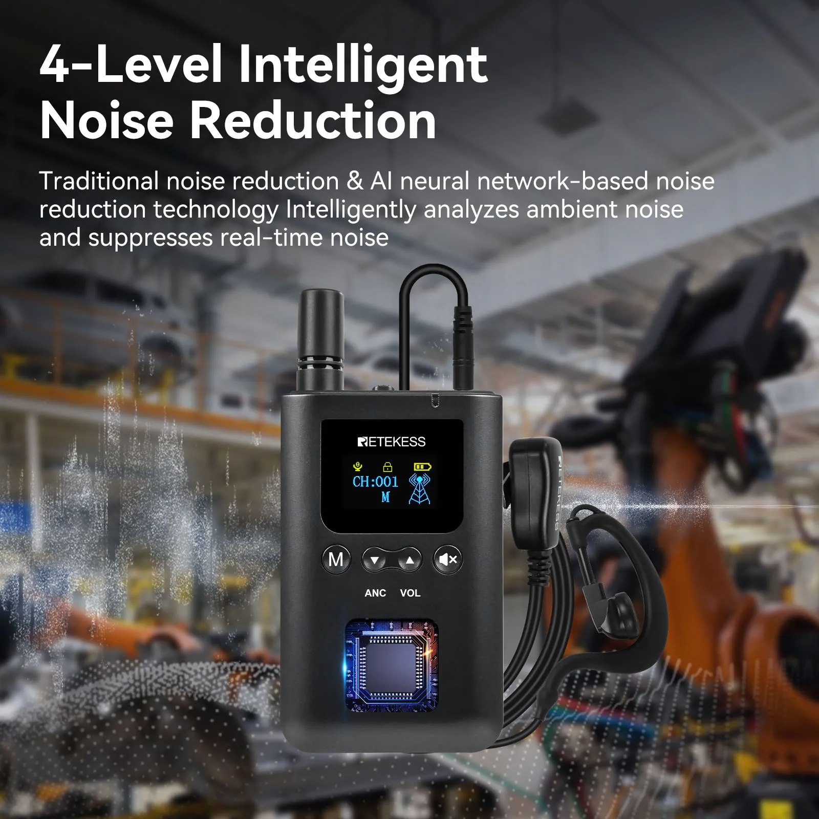 Equipped with 4-level adjustable intelligent noise reduction, it easily adapts to the noisy environments common in tourism and factory visits. A simple long press of the ANC button on the transmitter switches noise reduction levels, filtering out crowd noise in scenic spots, machine noise in factories, and other ambient interference, keeping explanations clear and easy to hear.