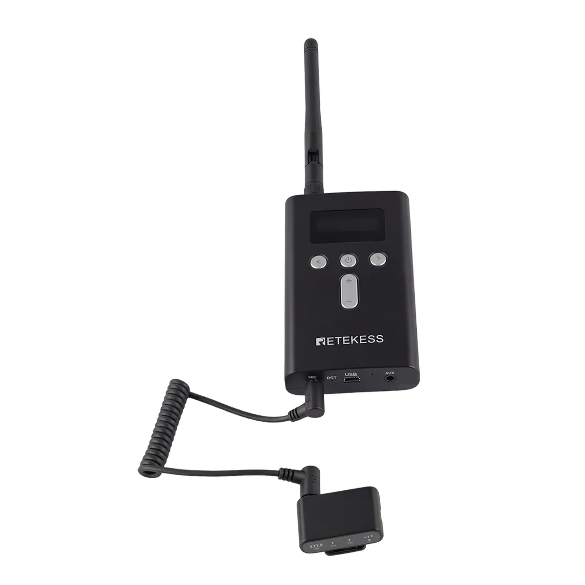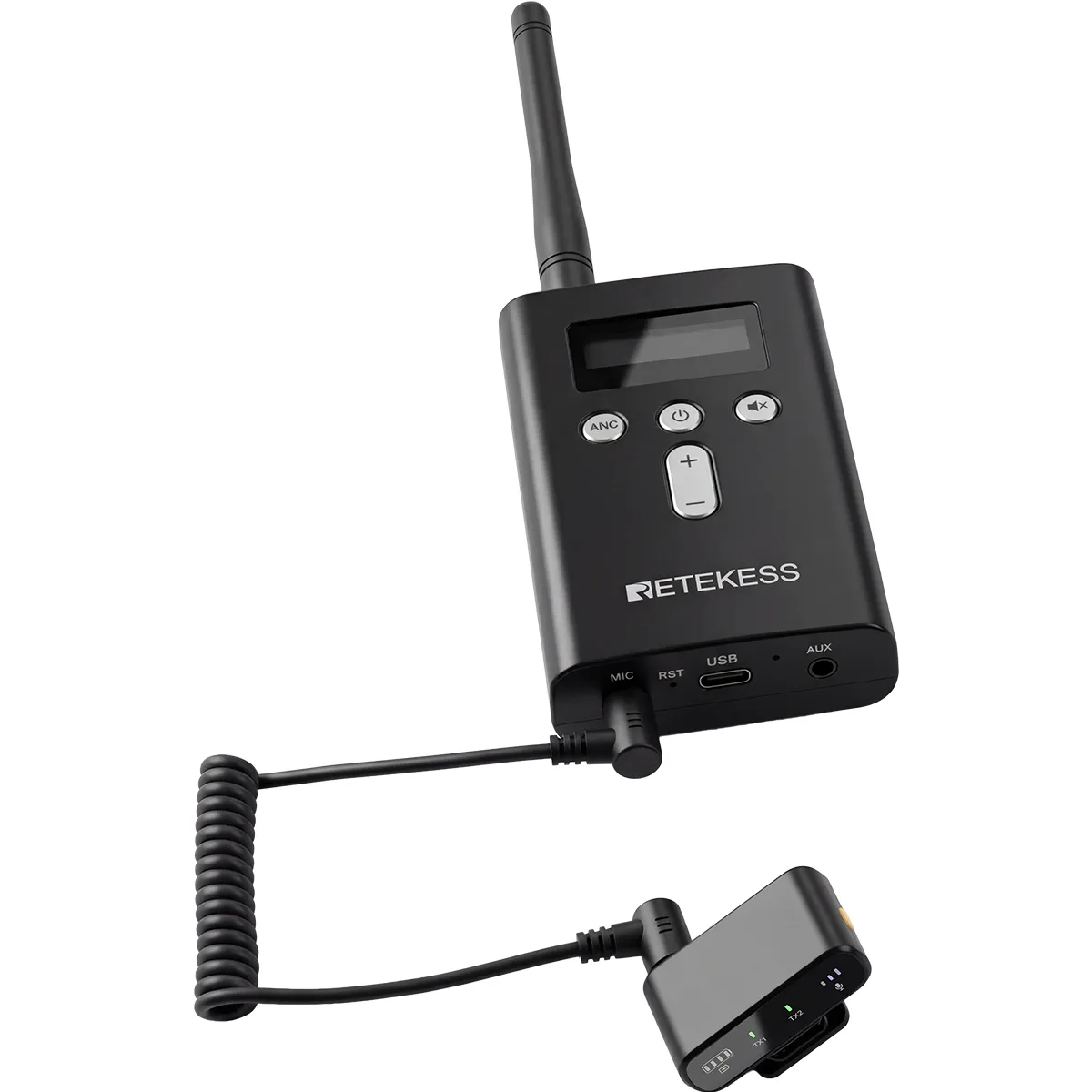 Simply connect the wireless microphone receiver to the Retekess tour guide transmitter via 3.5mm audio cable, plug the Audio Out port of the mic receiver into the Mic In port of the tour guide transmitter, turn on the two transmitters and one receiver, then let two tour guides or speakers wear the microphones, and their voices will be transmitted synchronously to all tourist headphones through the tour guide system, realizing dual-person explanation and making team tours more smooth and efficient.